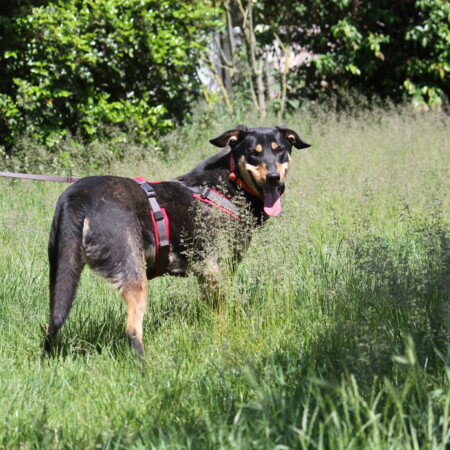 Er liebt Spaziergänge und draußen zu sein um neues kennenzulernen. Im Haus ist er nach etwas Auslastung entspannt und kann gut zur Ruhe kommen, Wir wünschen uns für ihn Menschen, die Zeit für ihn haben um richtig anzukommen und ihm einen sicheren Hafen bieten können. Hier läßt er sich von Fronie von der Couch schupsen, wenn Lutz mit ihnen kuschelt und er hätte so gerne einen festen Menschen für sich.