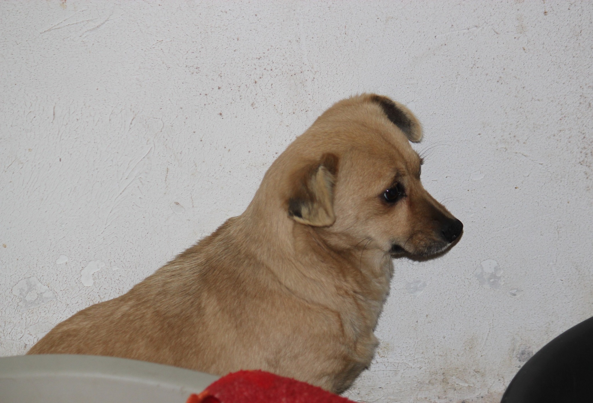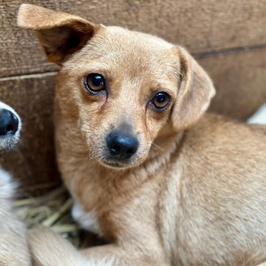 Die kleine Traudi ist mit 4,8 kg eine zierliche Maus und bereits ausgewachsen. Wir vermuten, das bei der Mischung ein Chiahuahua beteiligt war.